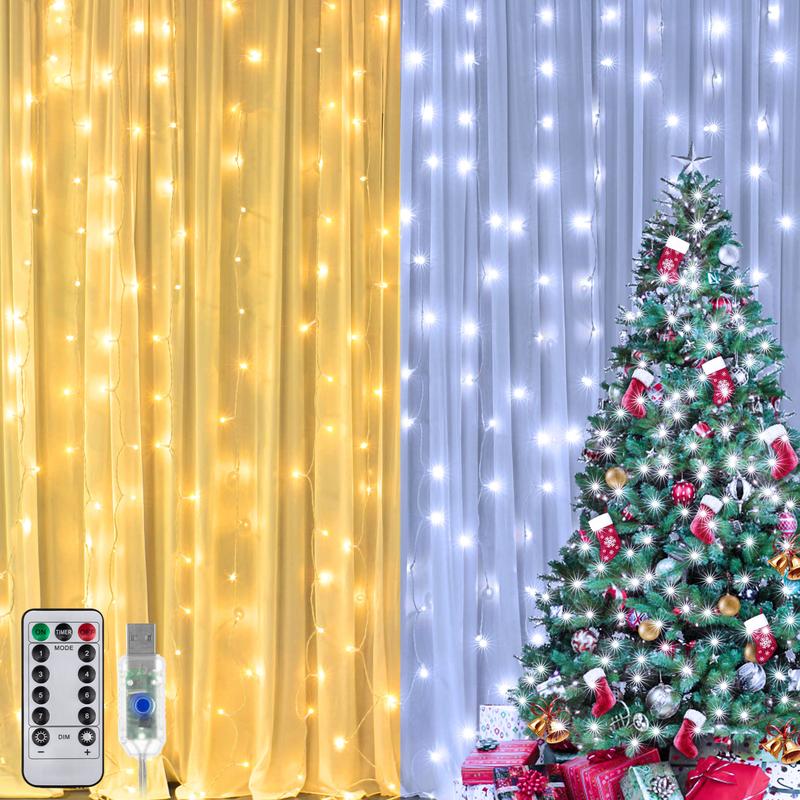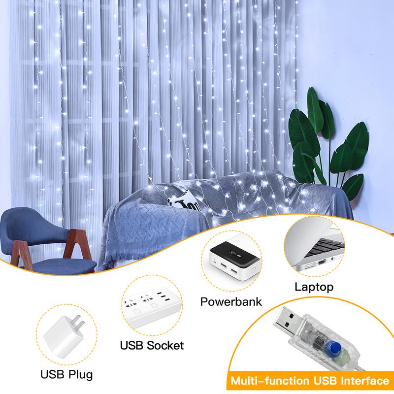 [Upgraded Design] : Ollny curtain string lights uses 5V low voltage power, which will not overheat and is safe and reliable, allowing for peace of mind when using it.Waterproof fairy lights Perfect for indoor and outdoor decorations: wedding, backdrop,party,home, window, wall, bedroom etc. Unravel easily with no tangles