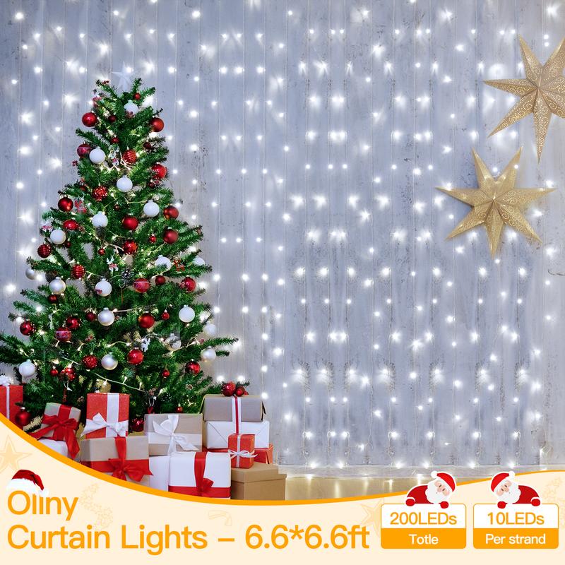 Ollny 200 LED Curtain Lights - 6.6 x 6.6 Ft USB Fairy Lights with Remote Control, 8 Dimmable Modes, Timer Function, Waterproof Outdoor String Lights for Bedroom, Party, Patio, and Wedding Decorations